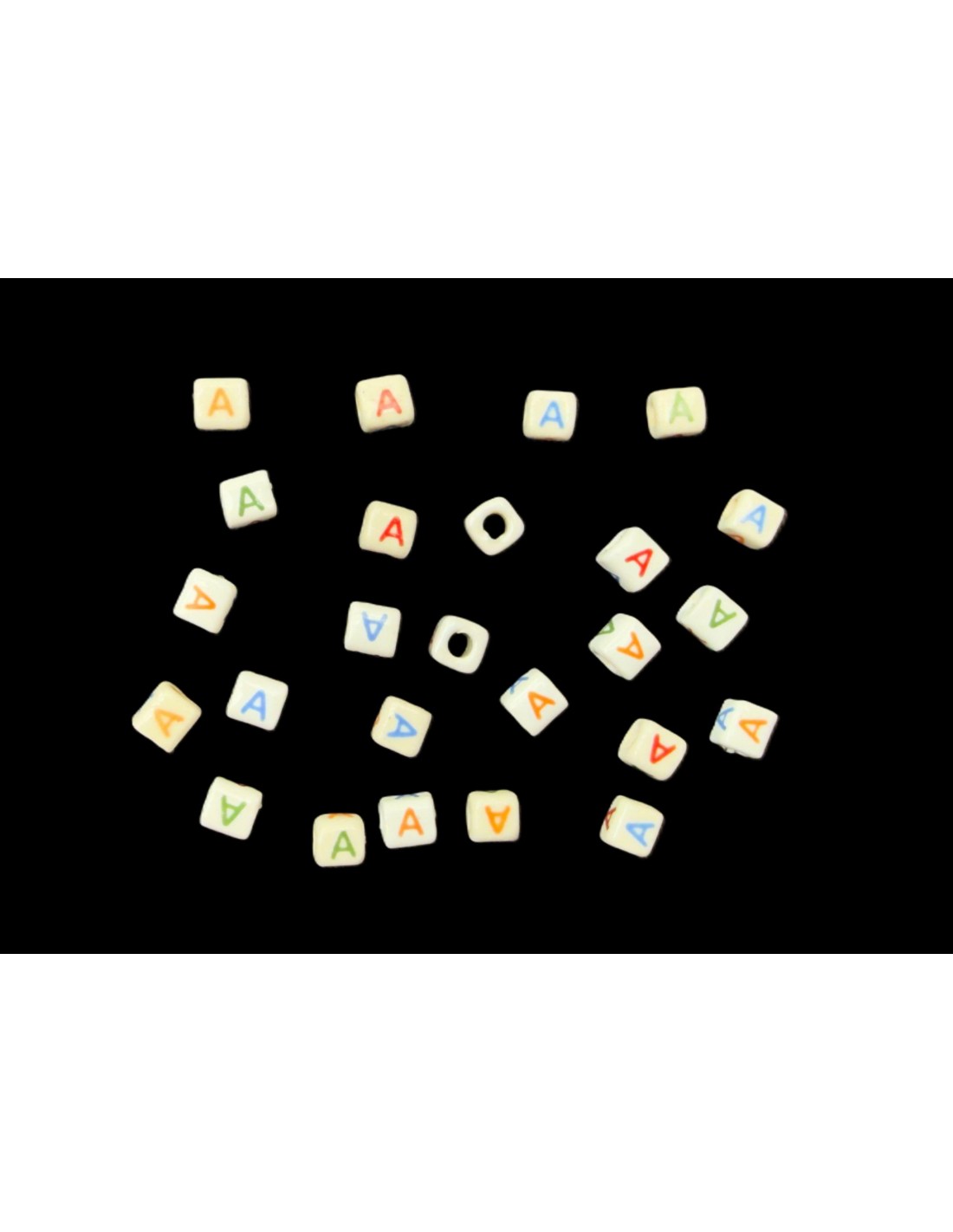 Cuentas Cerámica Porcelana Cubo  Letra A Tamaño Aprox. 7x7mm.  Con Agujero de Paso 3mm. Contiene 25 Unidades