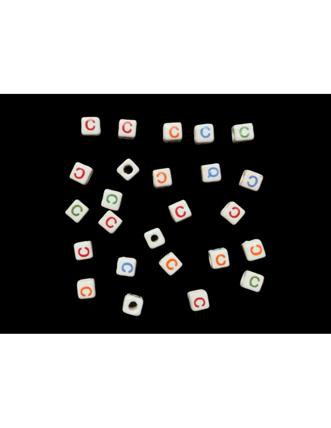 Cuentas Cerámica Porcelana Cubo  Letra C Tamaño Aprox. 7x7mm.  Con Agujero de Paso 3mm. Contiene 25 Unidades