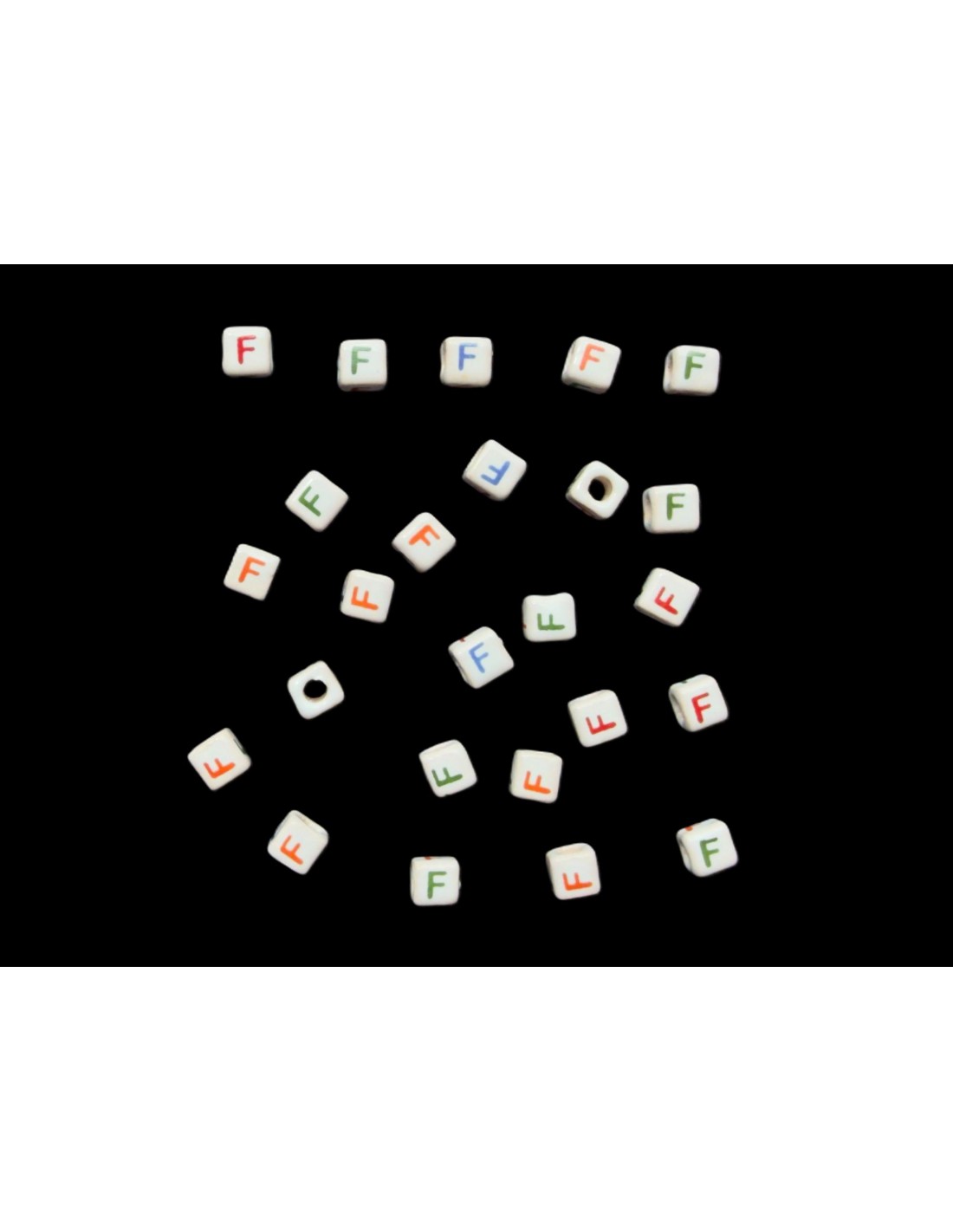 Cuentas Cerámica Porcelana Cubo  Letra F Tamaño Aprox. 7x7mm.  Con Agujero de Paso 3mm. Contiene 25 Unidades