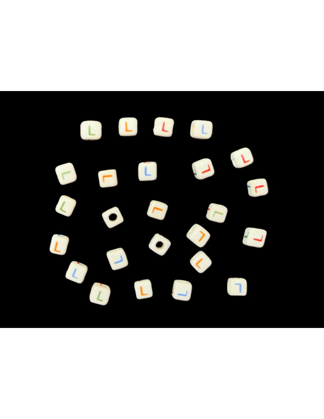 Cuentas Cerámica Porcelana Cubo  Letra L Tamaño Aprox. 7x7mm.  Con Agujero de Paso 3mm. Contiene 25 Unidades