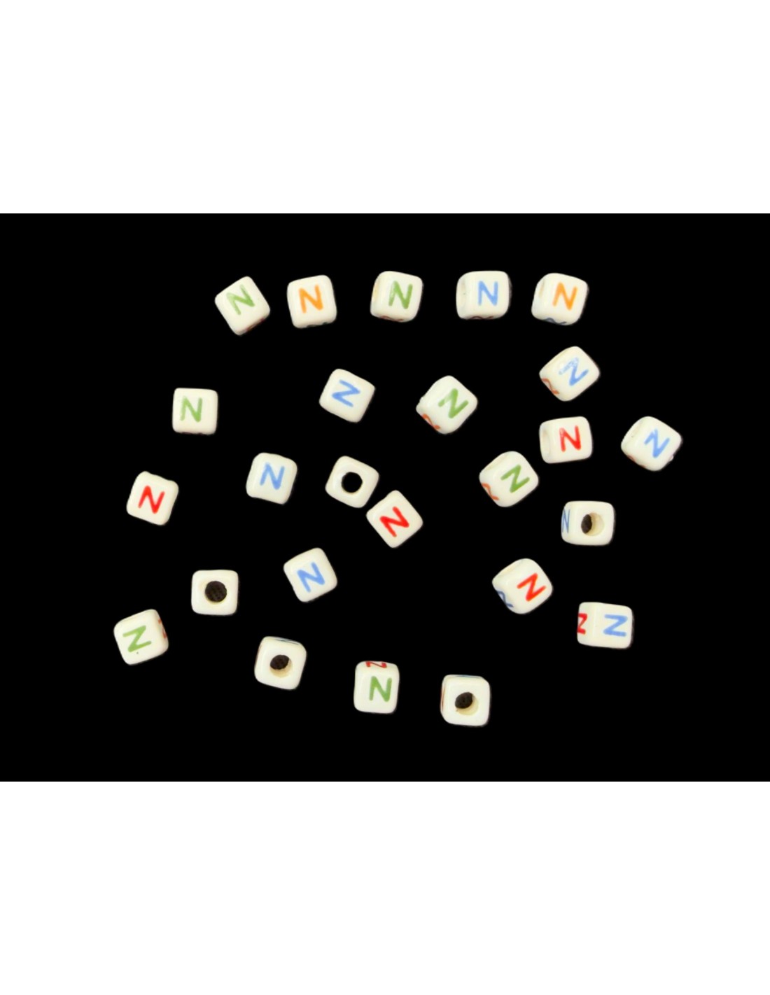 Cuentas Cerámica Porcelana Cubo  Letra N Tamaño Aprox. 7x7mm.  Con Agujero de Paso 3mm. Contiene 25 Unidades