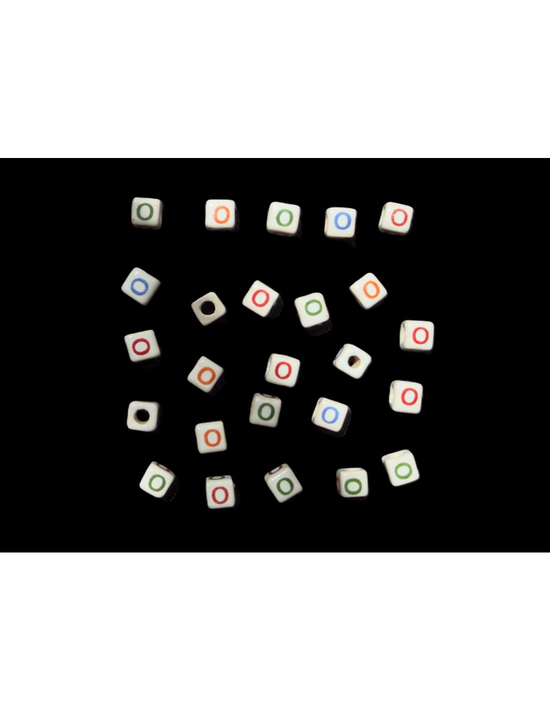 Cuentas Cerámica Porcelana Cubo  Letra O Tamaño Aprox. 7x7mm.  Con Agujero de Paso 3mm. Contiene 25 Unidades