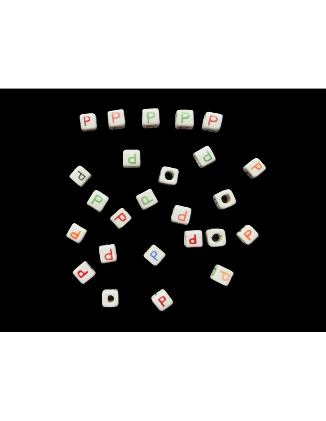 Cuentas Cerámica Porcelana Cubo  Letra P Tamaño Aprox. 7x7mm.  Con Agujero de Paso 3mm. Contiene 25 Unidades
