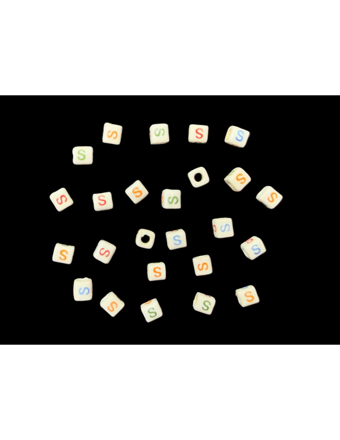 Cuentas Cerámica Porcelana Cubo  Letra S  Tamaño Aprox. 7x7mm.  Con Agujero de Paso 3mm. Contiene 25 Unidades