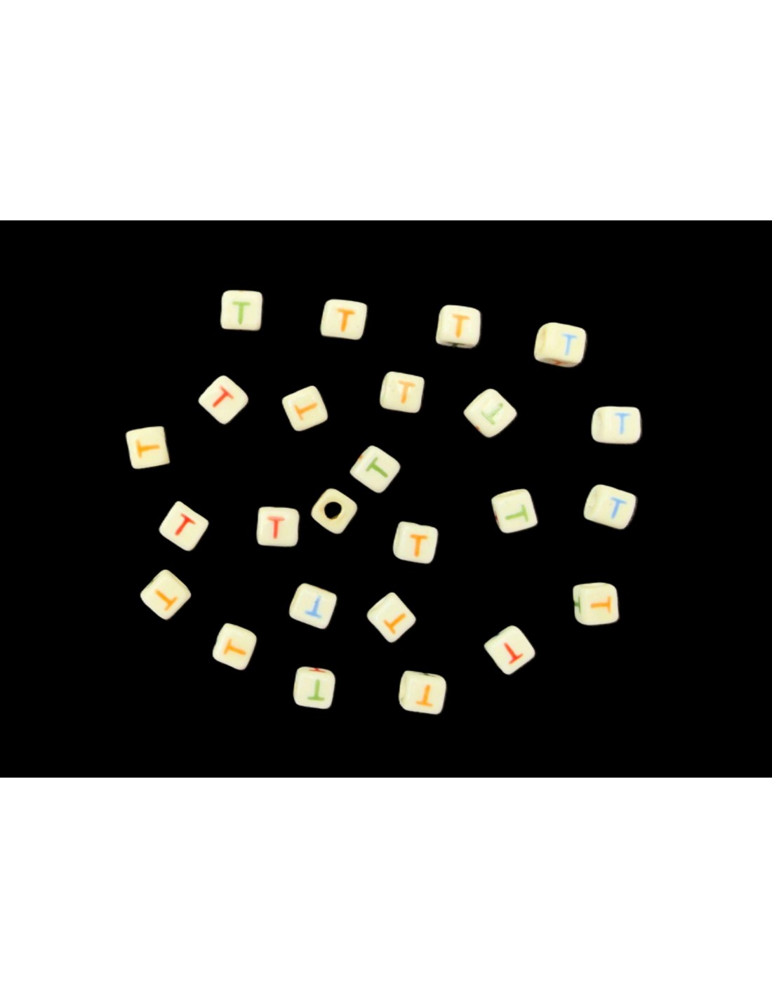 Cuentas Cerámica Porcelana Cubo  Letra T Tamaño Aprox. 7x7mm.  Con Agujero de Paso 3mm. Contiene 25 Unidades