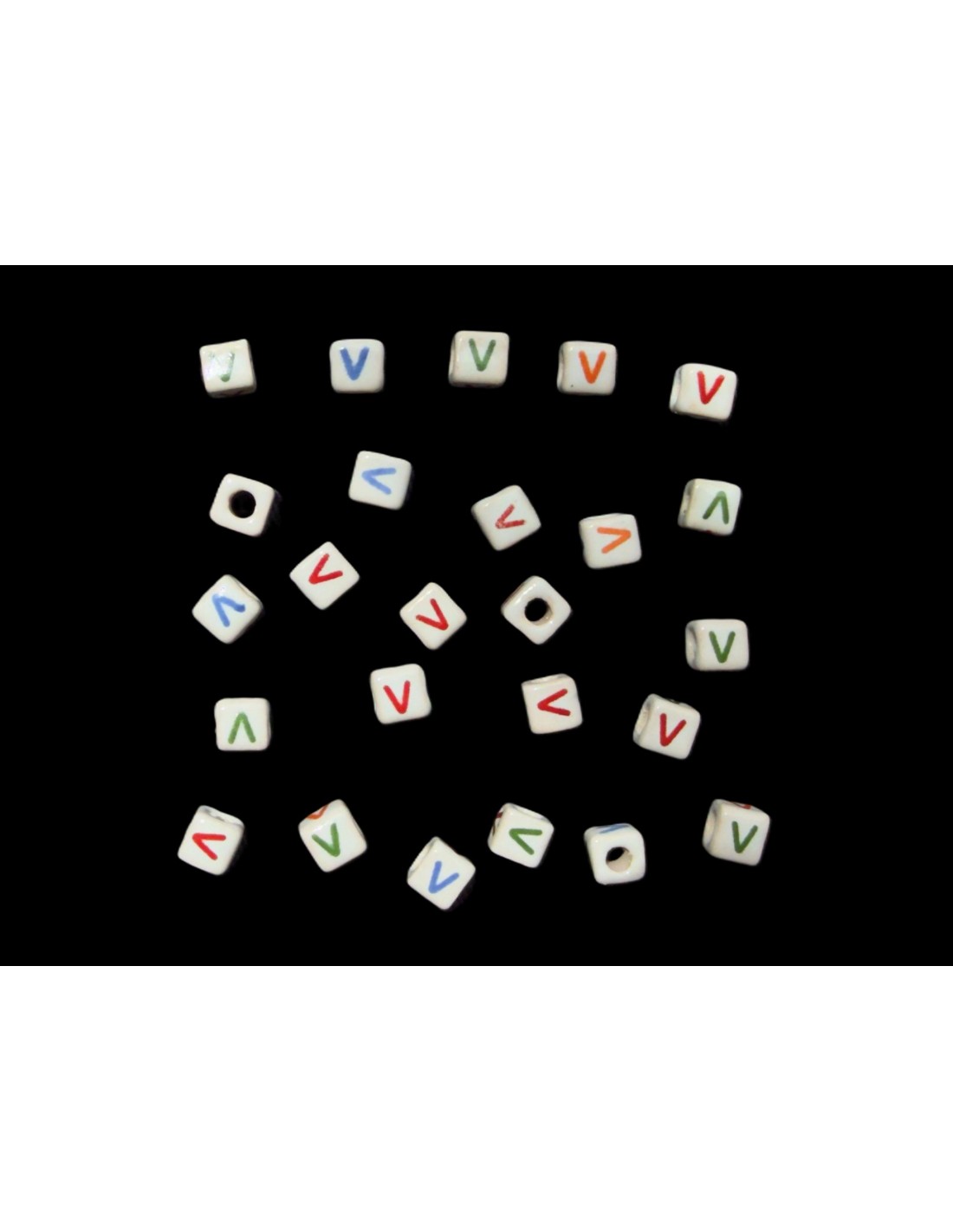 Cuentas Cerámica Porcelana Cubo  Letra V Tamaño Aprox. 7x7mm.  Con Agujero de Paso 3mm. Contiene 25 Unidades