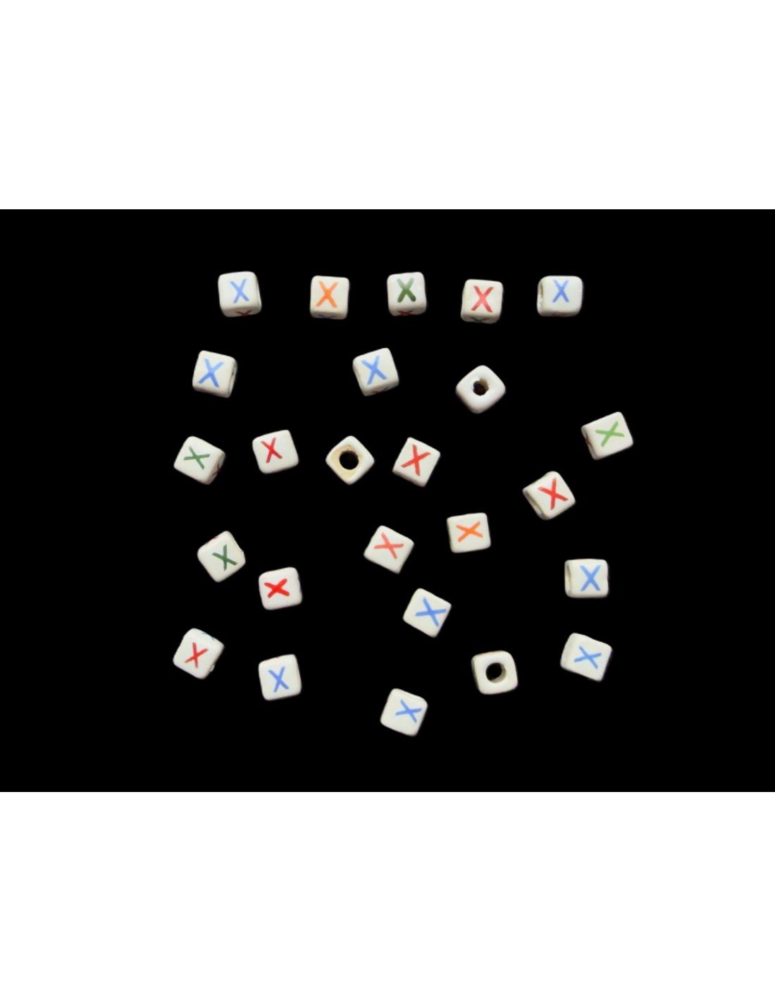 Cuentas Cerámica Porcelana Cubo  Letra X Tamaño Aprox. 7x7mm.  Con Agujero de Paso 3mm. Contiene 25 Unidades